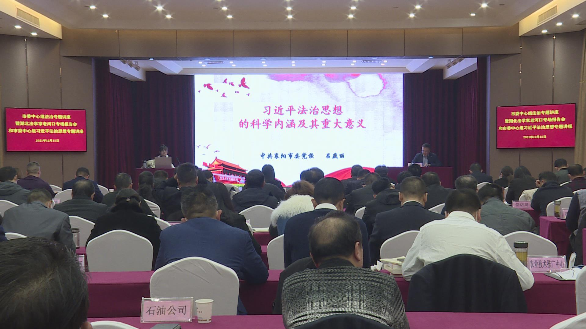 12月15日,我市举办市委中心组习近平法治思想宣讲报告会。市委副书记、政法委书记郭章新主持报告会。