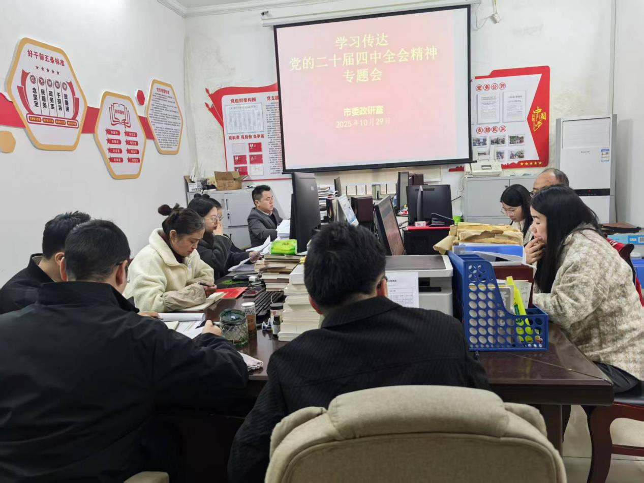 10月29日,市委政研室召开机关例会,专题传达学习党的二十届四中全会精神。
