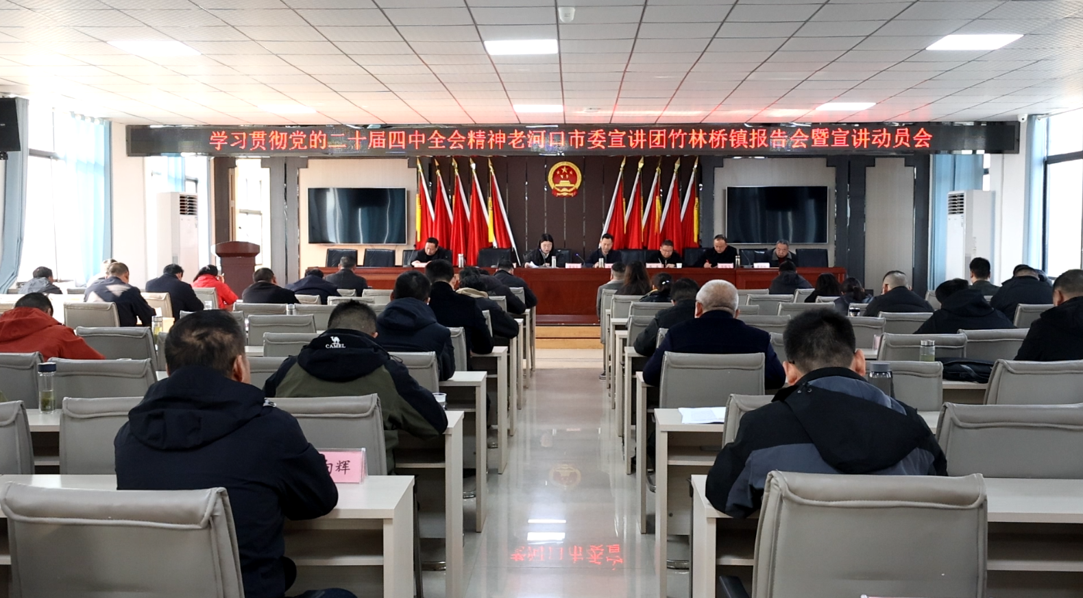 近日,竹林桥镇组织召开学习贯彻党的二十届四中全会精神专题宣讲报告会。市委宣讲团成员、竹林桥镇党委书记晋瑞芳作专题辅导,镇党委班子成员、全体机关干部参加会议。