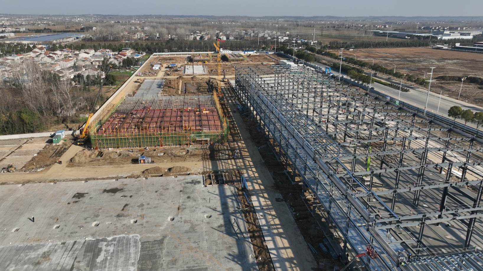 截至目前,项目总体进度完成41%,电芯厂房钢结构完成80%。PACK厂房地基基础施工已完成100%,准备进入钢结构安装施工,动力厂房承台、地系梁完成100%,办公楼和1号、2号宿舍楼地梁浇筑完成100%,已进入楼层板结构施工中;原材料仓库承台、地梁浇筑完成100%,钢结构安装完成40%;雨污管网完成85%,给水、消防管网完成85%,厂区道路完成80%。电芯生产的主要设备正在陆续抵达我市,预计在今年5月份进入设备调试和试生产阶段,7月将正式竣工达产。