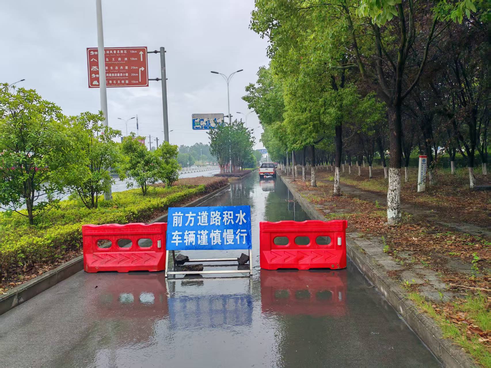 “这段路积水较深,立即设置警示标志,引导车辆绕行!”当天上午,在316国道和光华大道交接口、302省道华家沟等易积水路段,执法大队负责人带领执法队员冒雨巡查。暴雨中,执法人员的身影格外醒目,他们仔细检查每一处易涝点、积水点、边坡和桥梁,发现隐患及时向公路建设中心沟通,要求相关单位立即设置警示标志,并通知养护单位处置。同时,大队还加强水上安全监管,提醒船只注意天气水位变化。