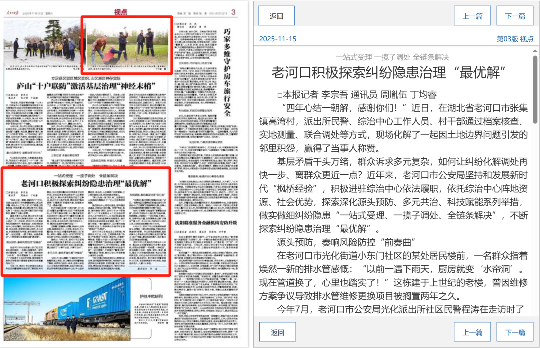 近日,《人民公安报》刊发《老河口积极探索纠纷隐患治理“最优解”》推介老河口公安依托综治中心建设深化纠纷隐患治理工作经验。