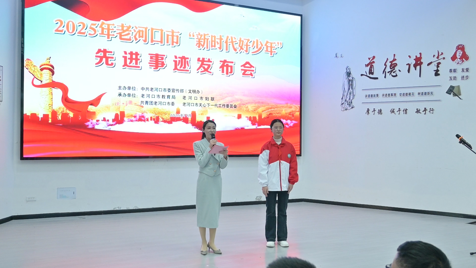 11月18日,老河口市举行2025年度“新时代好少年”先进事迹发布会,向社会推出孝老爱亲、爱国奉献、热心公益、自立自强、文明健康五大类共20名“新时代好少年”先进事迹。