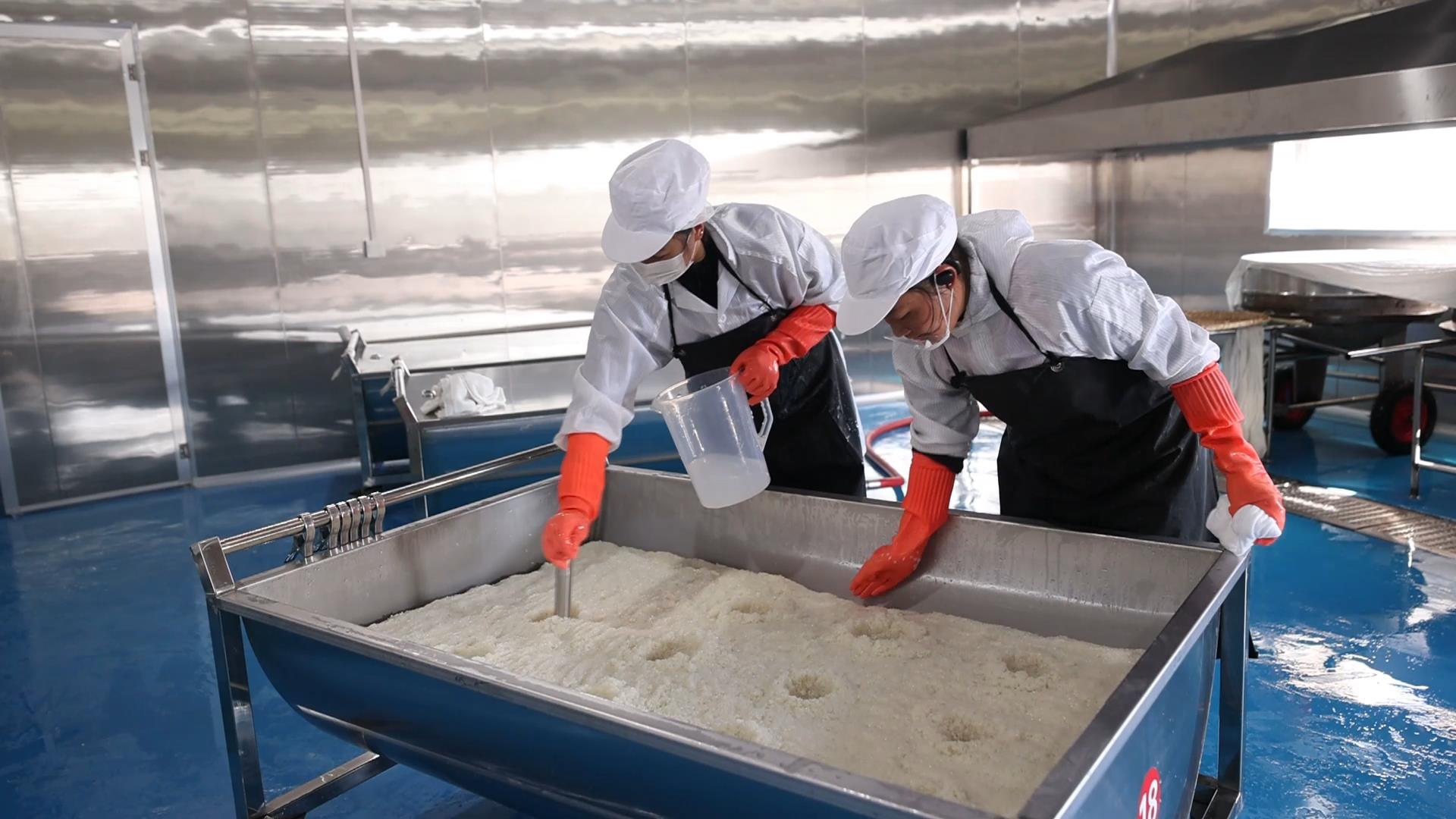 李楼镇张庄村黄酒小镇技术总监黄峰表示,冬酿黄酒,每一个环节都很重要。像这蒸米、拌曲,对时间、温度的把控都极为关键,只有做到精准操作,才能保证黄酒在寒冷的冬天里越放越香。