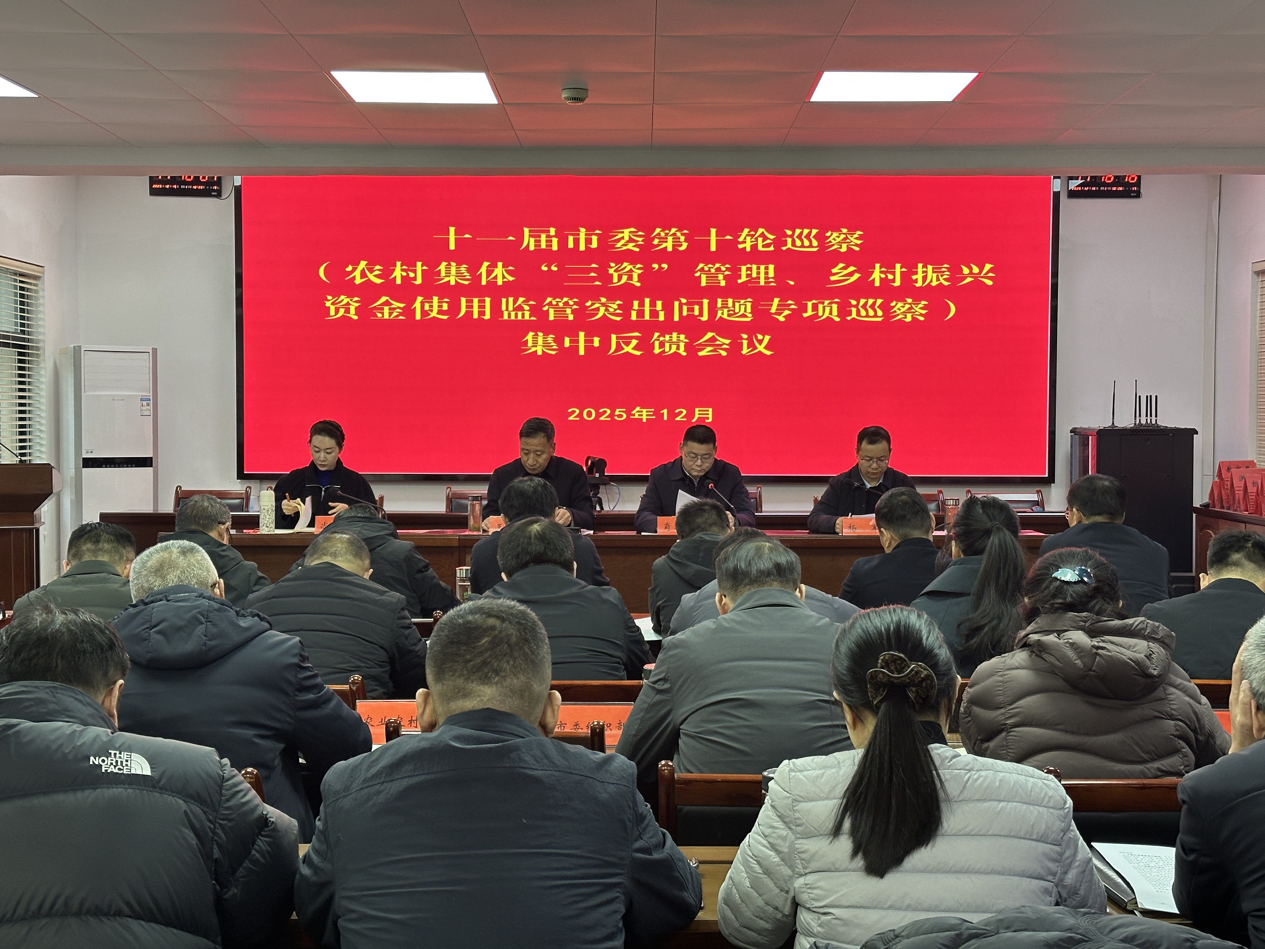 根据市委巡察工作统一部署,2025年12月15日,我市召开十一届市委第十轮巡察(农村集体“三资”管理、乡村振兴资金使用监管突出问题专项巡察)集中反馈会议,传达学习市委书记专题会议有关精神,反馈通报巡察情况,安排部署下阶段集中整改任务。市领导王双义、肖凌志、尚钰、杨军参加反馈会议。
