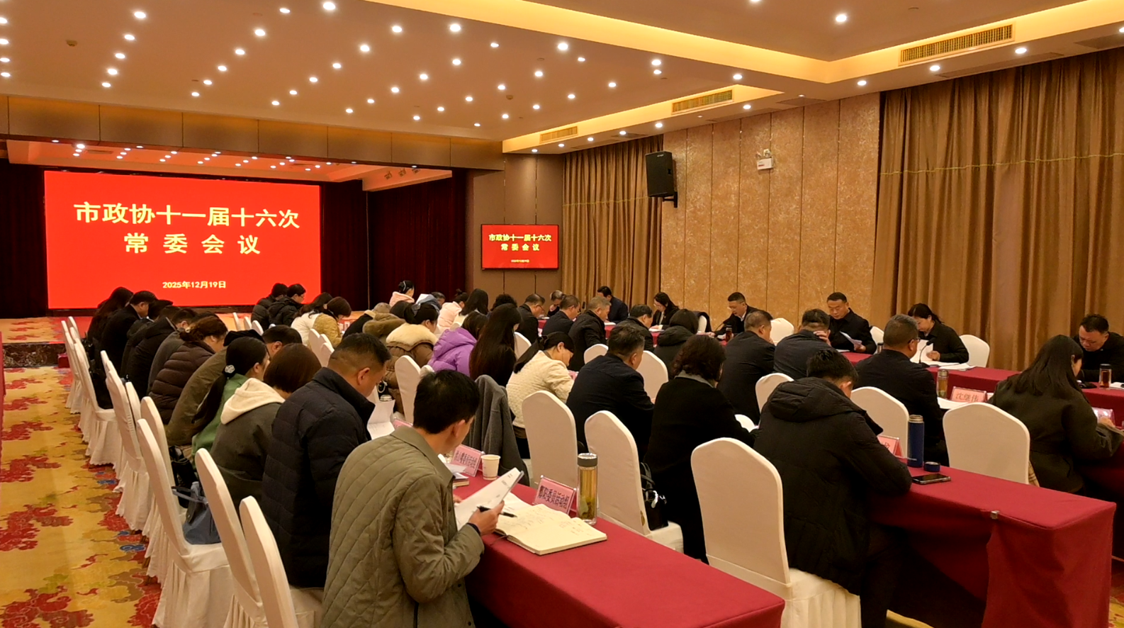 12月19日,市政协十一届十六次常委会议召开。市政协主席程勇主持会议并讲话,副主席吴峰、范正玉、鲁兵、王吉勇、张光彦,秘书长余钢参加会议。