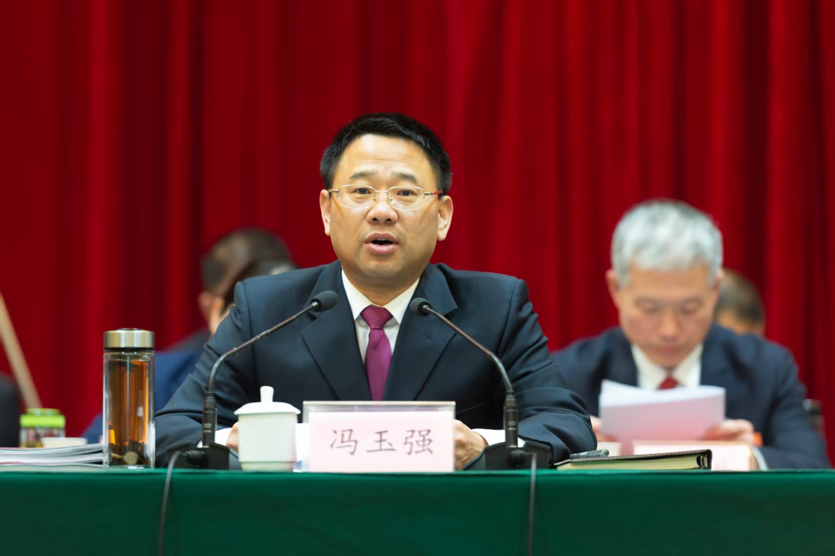 大会主席团常务主席、执行主席冯玉强、郭章新、刘国强、邓琪、王双义、肖凌志、金同敬、侯继红、梁正虎、王良栋、王伟、范晓冬在主席台前排就座。