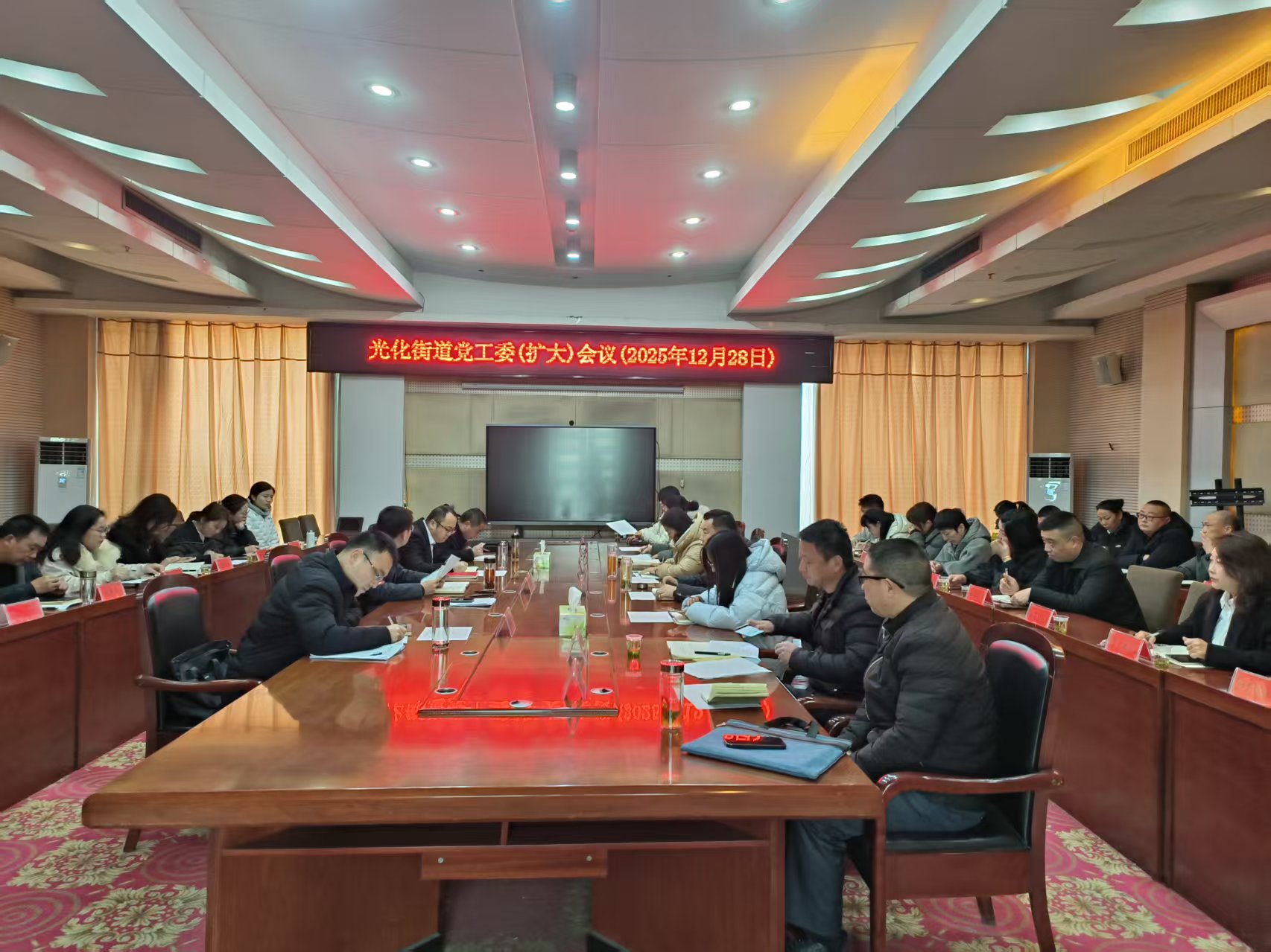 12月28日,光化街道召开党工委(扩大)会议,传达学习全市两会精神,部署贯彻落实工作。