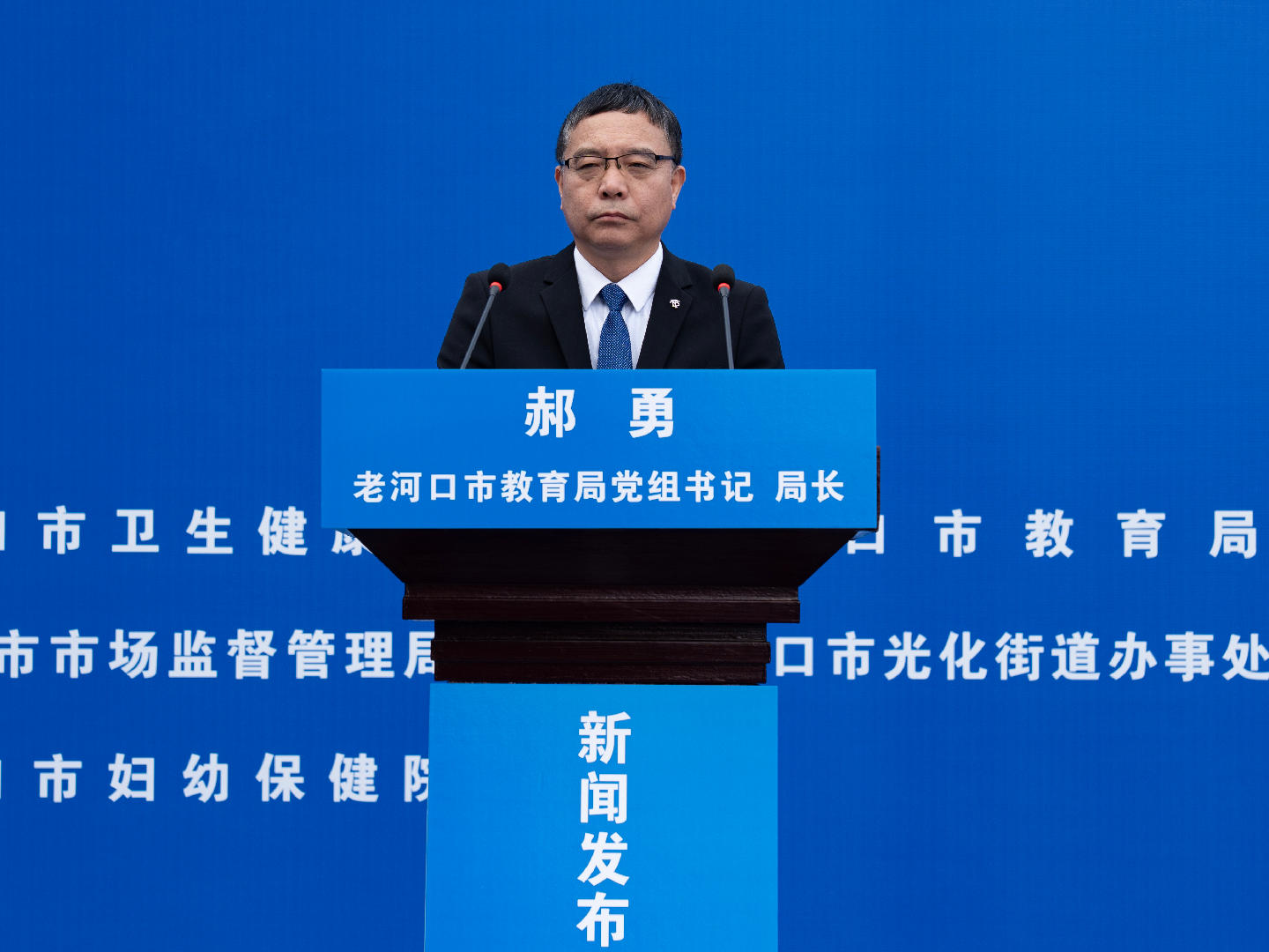 今天我们邀请到老河口市卫生健康局党组书记、局长郭栋同志,请他介绍老河口市“十四五”期间扎实做好优化婴幼儿托育健康服务方面相关工作成效。出席今天发布会的还有:老河口市教育局党组书记、局长郝勇同志,老河口市市场监督管理局局长李迎荣同志,老河口市光化街道党工委副书记、办事处主任文凌霄同志,老河口市妇幼保健院院长陈祥瑞同志,欢迎大家!我是主持人刘辉。