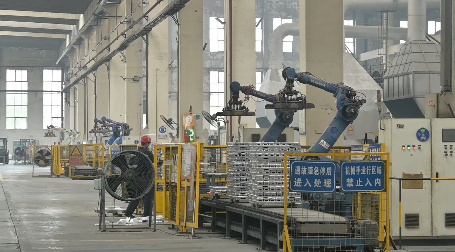 走进该公司熔铸车间,机器轰鸣声不绝于耳,从原料入炉到成品成型,各环节衔接紧密、高效有序,处处涌动着火热的生产热潮。装卸区内,叉车往来穿梭,将打包整齐的铝锭快速装车,发往各地客户。