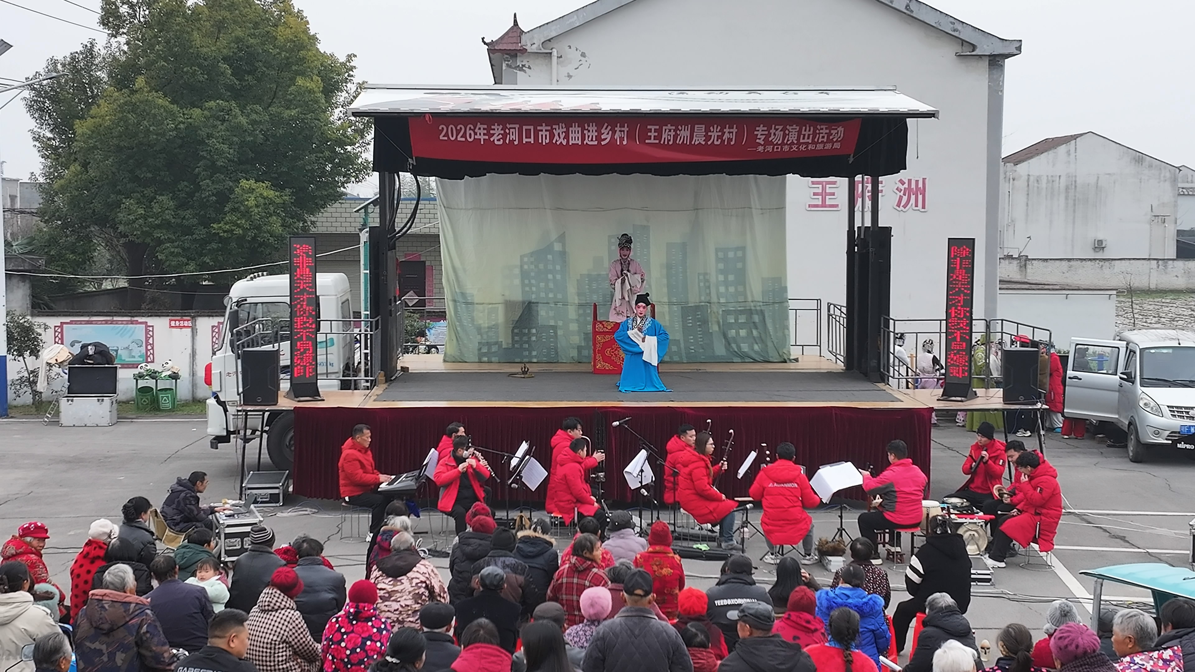 1月27日,市文化和旅游局“戏曲进乡村”专场演出活动走进王府洲晨光村,为洲上村民送上一场精彩的戏曲盛宴。