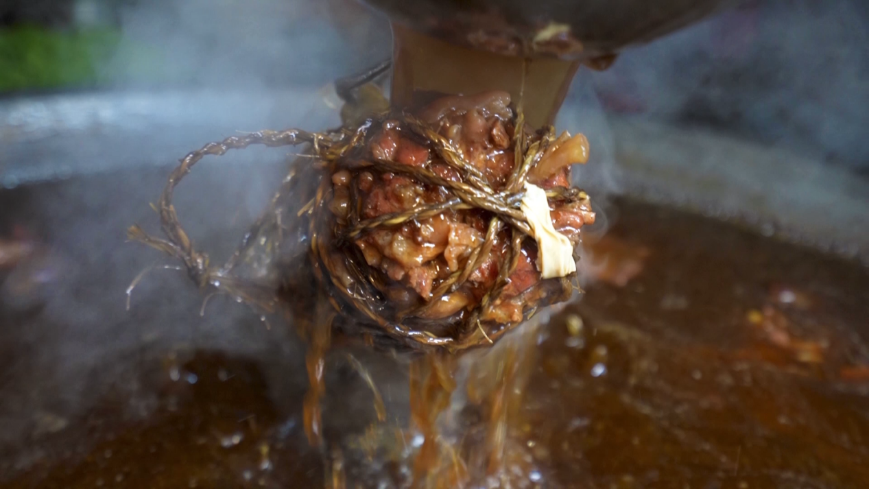更具巧思的是,老手艺人们会用龙须草层层拴住,既为增添清冽的香味,更让缠蹄的口感层次更丰富,每一道工序,都是时光沉淀的匠心。