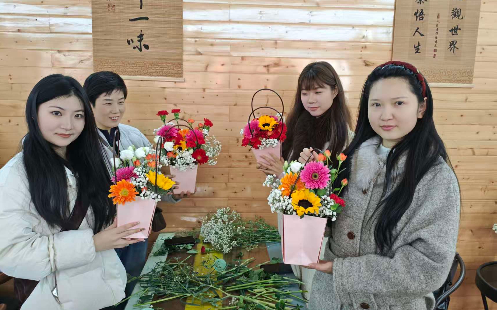 在艺术插花品香体验活动中,大家首先相互交流,探讨插花技巧;随后,各自发挥想象力和创造力,用自己的匠心巧手精心修剪、搭配花枝,将各色鲜花插入精致的花瓶中,装扮成美丽的花束。现场温馨融洽,笑语不断,弥漫着鲜花的芬芳,洋溢着幸福的味道,传递着春天浪漫的气息。大家在花艺创作中充分感受到美学的魅力,纷纷拍照留念,彰显出心中对未来美好生活的向往和祝福。
