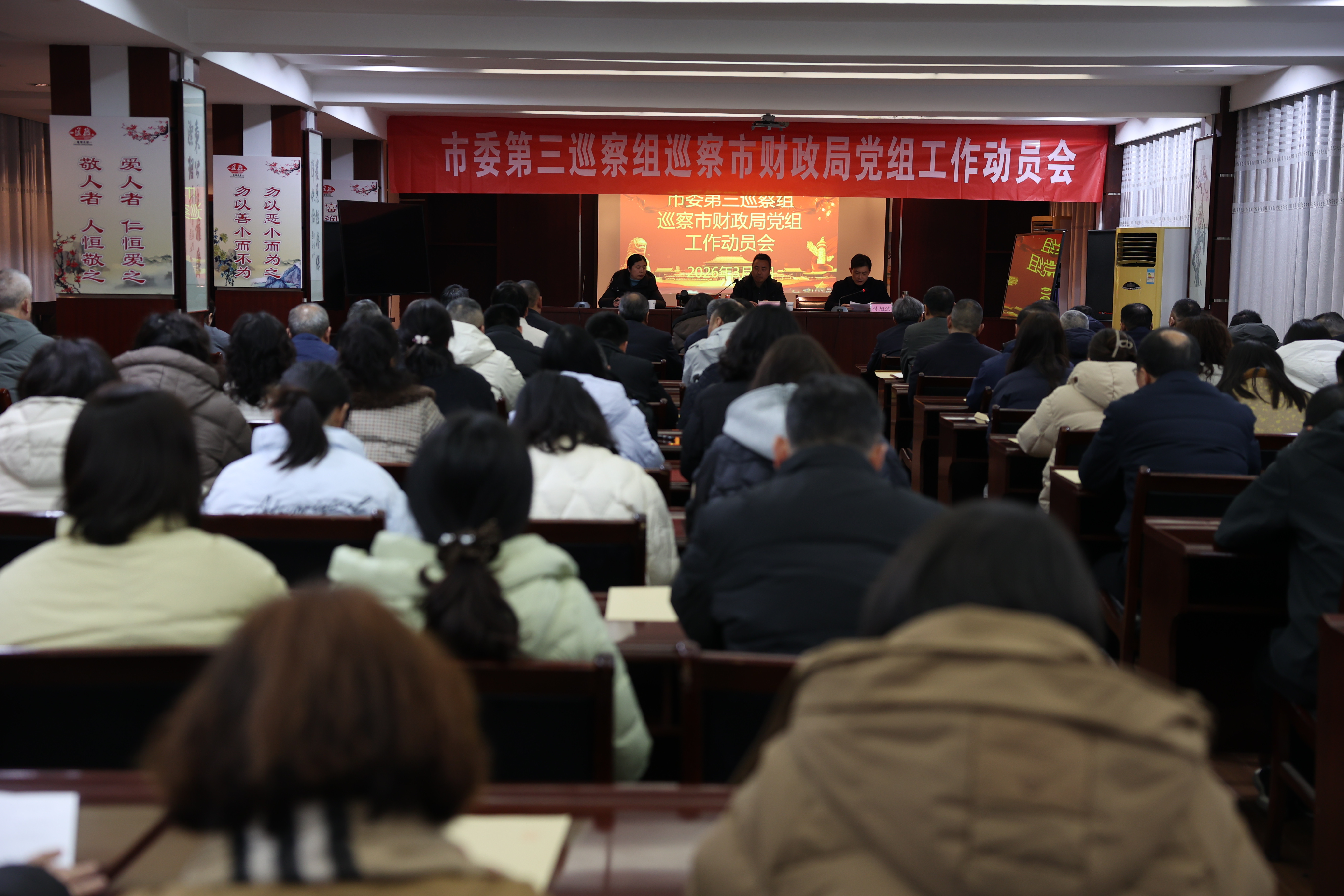 根据市委巡察工作统一部署,2026年3月6日,市委第三巡察组巡察市财政局党组工作动员会召开。市委第三巡察组组长张国忠作动员讲话,对深入学习贯彻习近平总书记关于巡视工作重要论述、扎实开展巡察工作提出要求。市财政局党组书记付旭波主持会议并作表态发言。