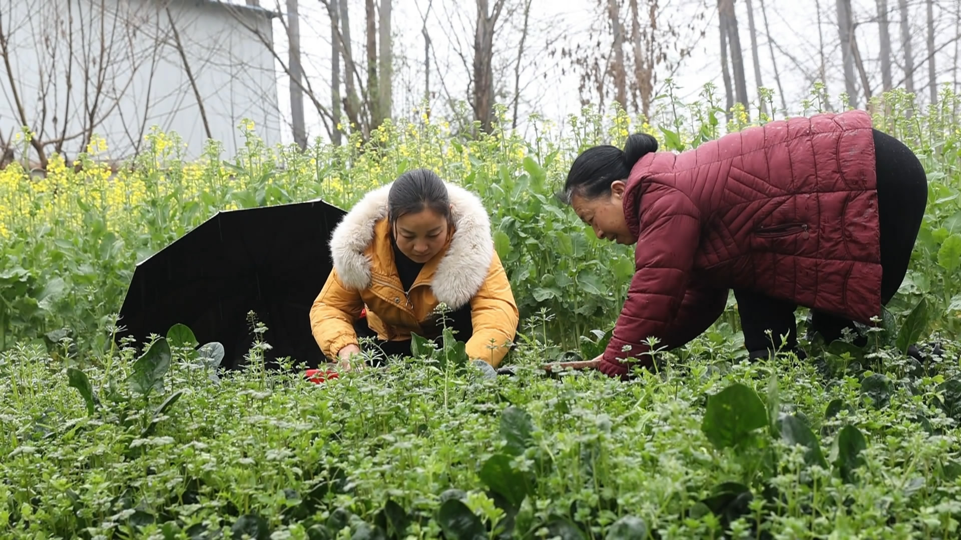 村民袁少伟说:“地米菜要找这种没开花的,这样的比较嫩。今天多挖一点,回家做汤喝。”