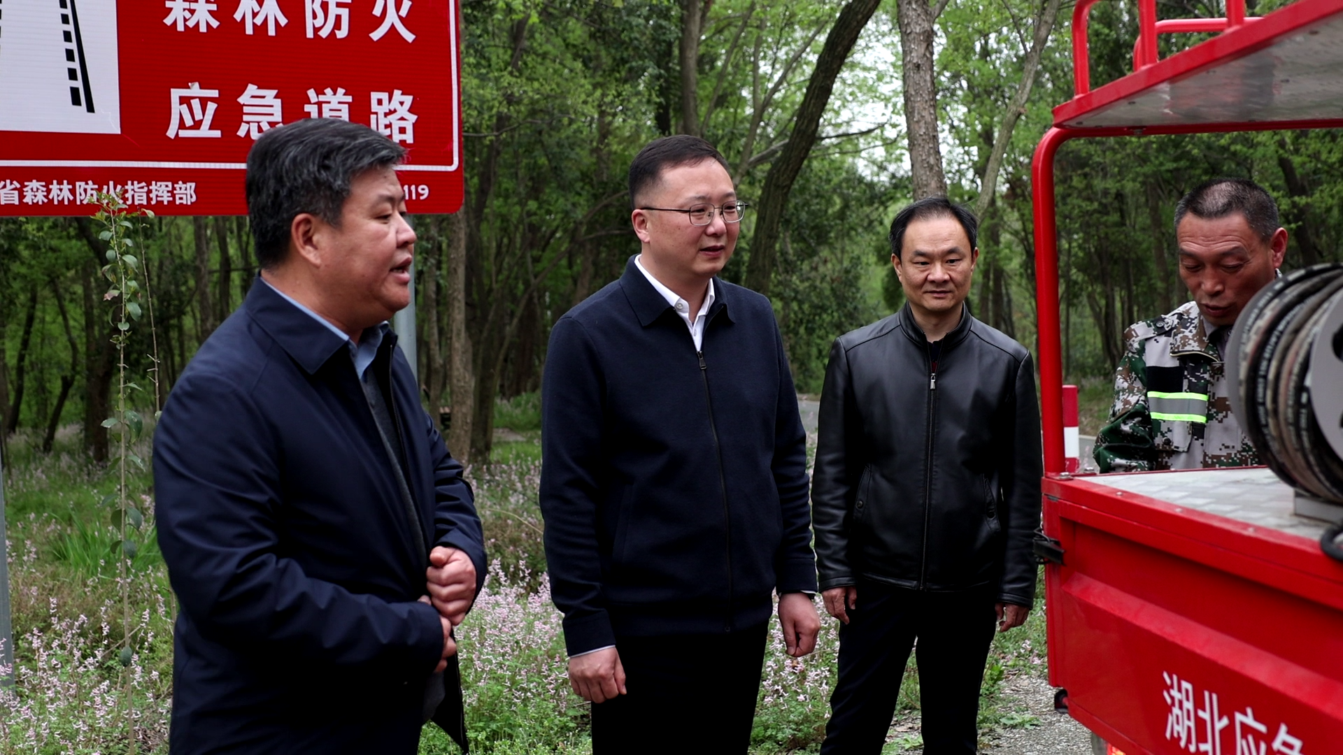 郭章新一行先后来到百花山国有林场、竹林桥镇集体林地等重点区域,详细了解当前春季防火形势、隐患排查、火源管控及应急值守等相关情况。