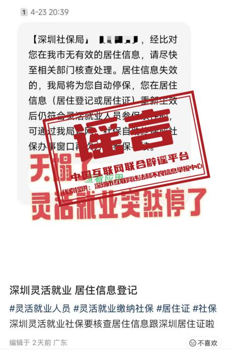 “深圳灵活就业社保被停保”不实(2026·04·29)