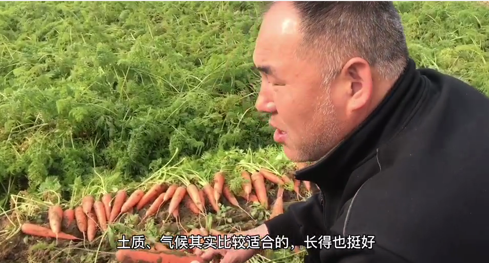伞福臣说,这里土地沙性比较好,土壤疏松透气,种出来的胡萝卜品相好、甜度高、果肉细腻。他们种植了500亩,每亩大概在5000公斤左右,亩产效益达到七八千元。